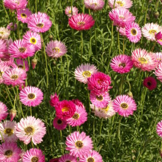 Rhodanthe chloropetala (Helipterum roseum). Rusoikikukka Brilliant Rose eri pakkauskoot.