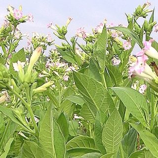 Nicotiana tabacum. Lehdet käytetään savukkeisiin ja sikareihin.