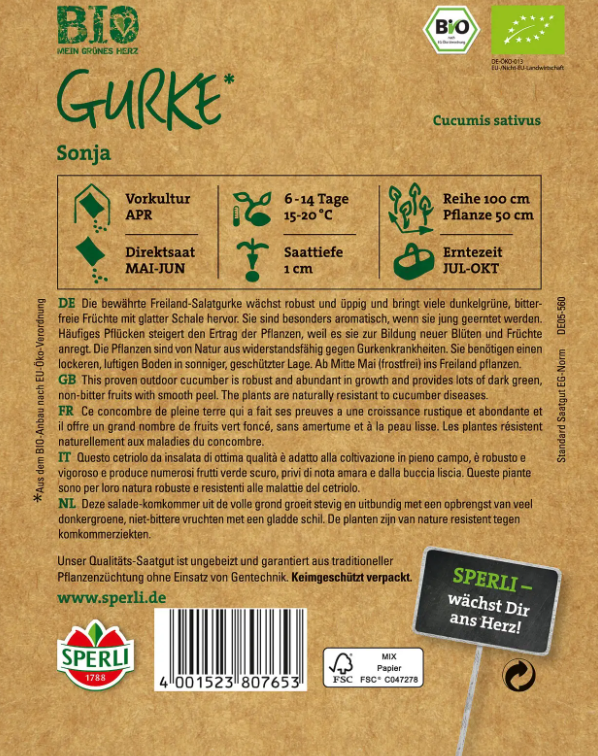 Avainsanat tuotteelle luomusiemen, salaattikurkku, Sperli