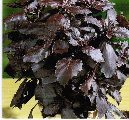 Ocimum basilicum,’Purple Ruffle’, yksivuotinen mausteyrtti, isot lehdet. Viihtyy aurinkoisella, lämpimällä kasvupaikalla. Taimet saa viedä pihalle vasta kun maan lämpötila on vähintään 15 astetta.Basilika ei kestä kylmää. Siemenet kylvetään maalis-toukokuussa, siemeniä ei peitetä, koska itävät valossa. itämisaika noin 10-20 vuorokautta 18-25 asteessa. Basilika on parasta tuoreena, mutta voidaan myös kuivata.Määrä 5 g.