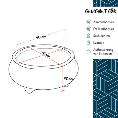 Keraaminen ruukku – Bonsai-ruukku on valmistettu korkealaatuisesta keramiikasta ja on täysin pakkasenkestävä ja lämmönkestävä. Lasitus estää värien haalistumisen ja tuo esiin puun kauneutta.