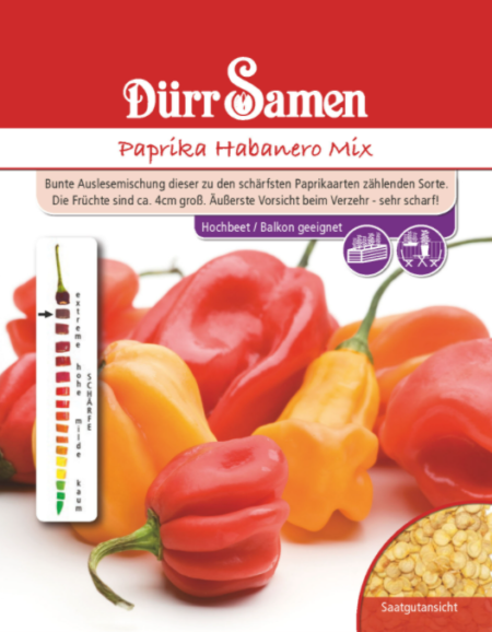 Chilipaprika Habanero Mix. Värikäs habanero sekoitus tulisimmista chililajeista. Kylvö: Helmikuusta huhtikuuhun. Peitä siemenet kevyesti. Kylvösyvyys n. 0,2 cm. Anna riittävästi valoa. Itää n. 20°C n. 8-10 päivässä. Optimaalinen 22-24°C. Kun sirkkalehti on näkyvissä, istuta pieniin ruukkuihin. Sadonkorjuu heinä-lokakuu. Kasvatuspaikka mahdollisimman aurinkoinen ja lämmin, tuulelta suojassa. Syvä, humusrikas ja tasaisen kostea maaperä optimaalisin.
