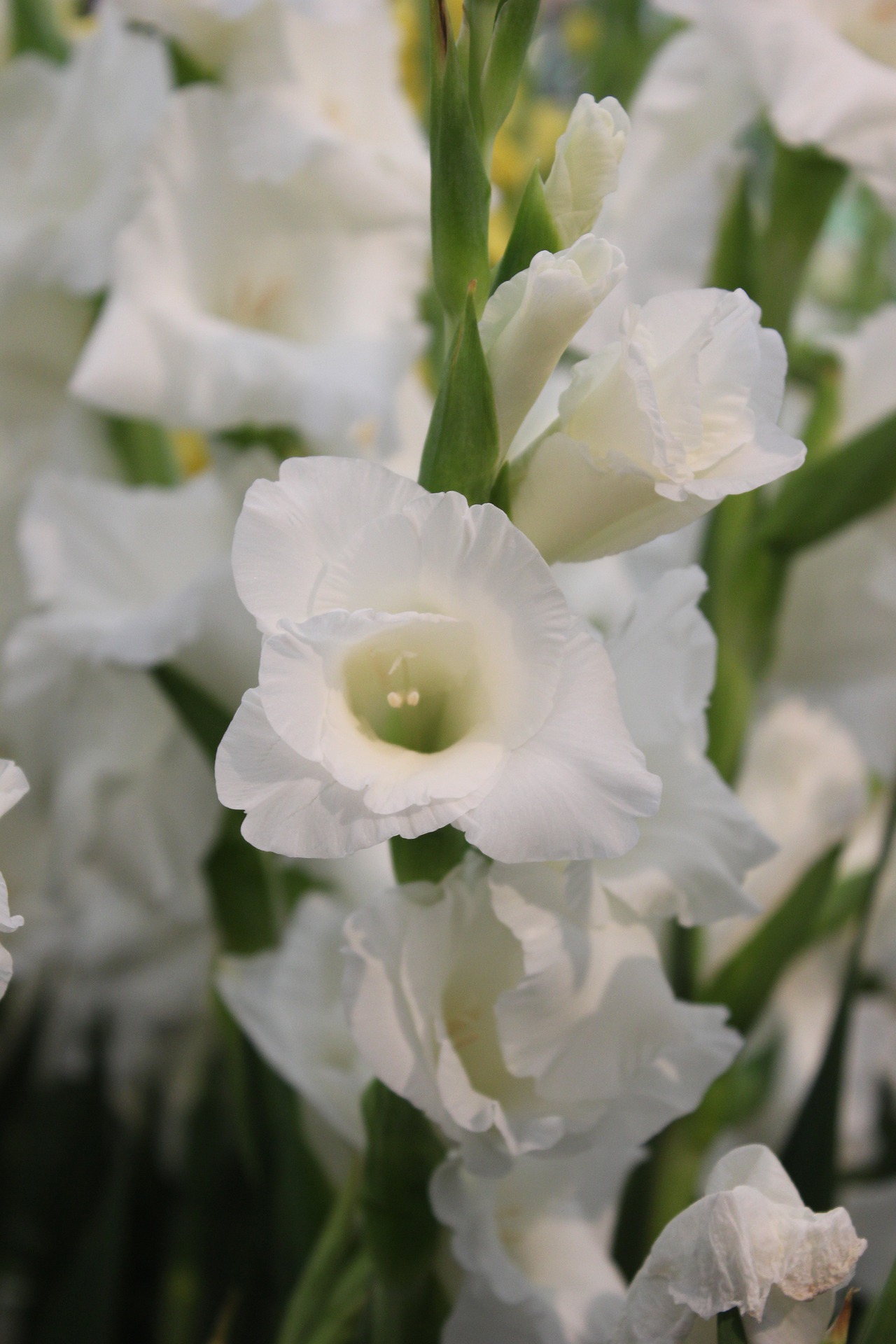 Gladiolus eli tarhamiekkalilja. Valkoinen. Koko 14+. Sipulit esikasvatetaan noin 3-6 viikkoa ruukuissa, joista istutetaan kesällä avomaalle hallojen mentyä. Lyhytkin esikasvatus nopeuttaa kukintaa, koska lämpimässä mukulat juurtuvat  ja lähtevät kasvuun nopeasti. Voidaan istuttaa myös suoraan avomaalle. Istutusyvyys 7 cm. Istutusväli 15 cm. Gladiolukset viihtyvät aurinkoisilla kasvupaikoilla tuulelta suojassa. Kastelu saa olla melko runsasta, kuivassa kukinta on epävarmaa. Ensimmäisten hallojen jälkeen,  mukulat nostetaan ylös ja kuivataan. Ne säilytetään talven yli viileässä paikassa. Yleensä kuitenkin hankitaan aina uudet mukulat kesäkukkien tapaan.