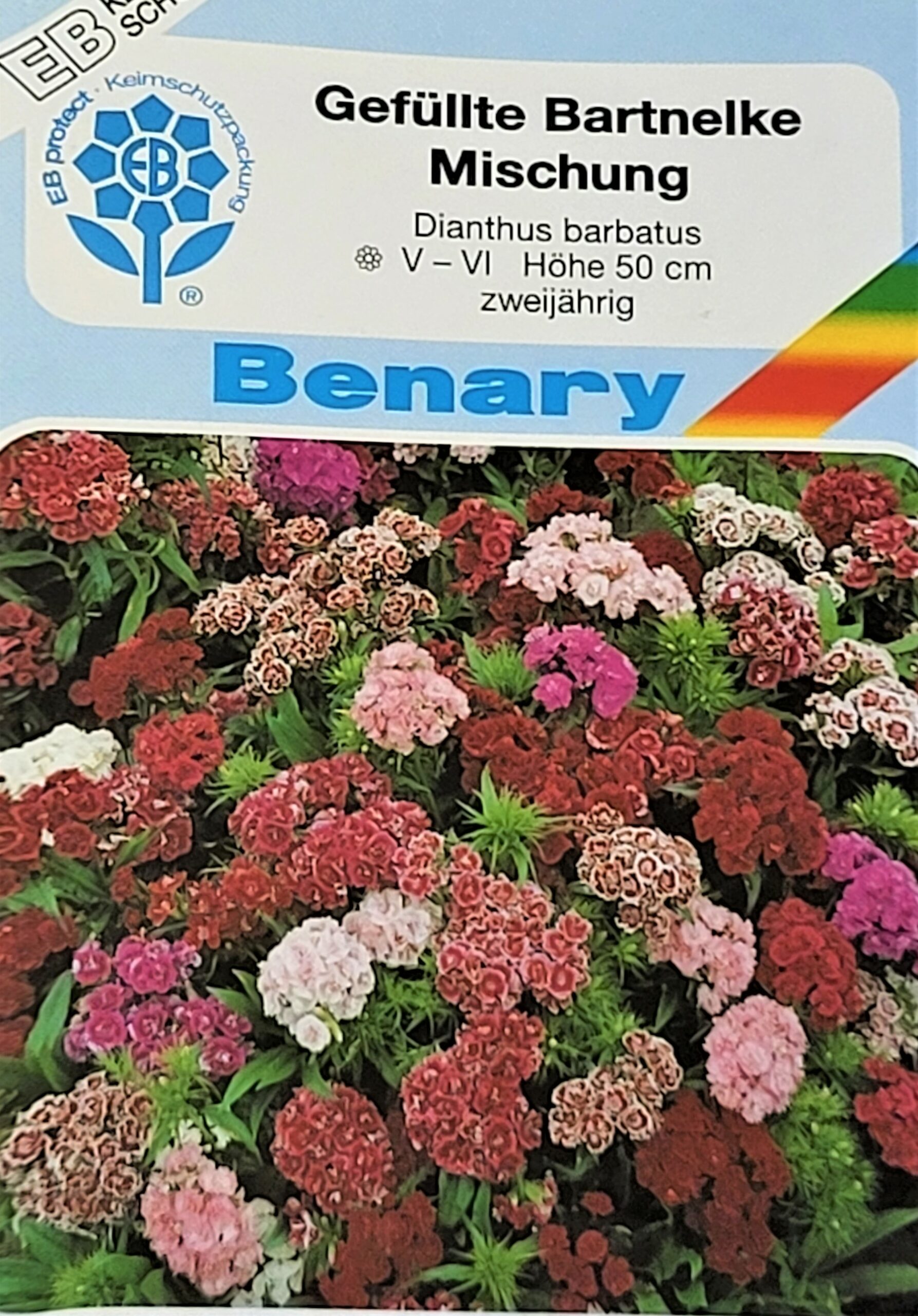 Kerrottu sekoitus, 50-60 cm korkea. Myös kaunis leikkokukkana. Kylvetään touko-kesäkuussa, itää 7-14 vuorokaudessa 15 asteessa, valossa. Kukinta touko-kesäkuussa seuraavana vuonna. Annoksesta tulee noin 300 kasvia.