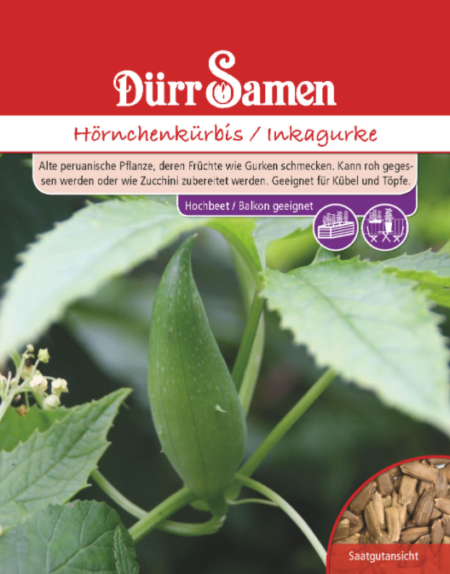 Inkakurkku / herkkuhyppykurkku. Nopeakasvuinen köynnös (jopa 6 m), jonka hedelmät maistuvat kurkulta. Kun hedelmät ovat noin 6 cm pitkät, ne voi syödä sellaisenaan. Isompia voidaan käyttää täytettynä, paistettuna, keitettynä. Esikasvatus huhtikuusta lähtien tai kylvö suoraan avomaalle ruukkuun tai multaan.Köynnös vaatii tukea. Viihtyy auringossa ja puolivarjossa.