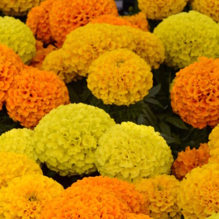 Iso samettikukka Taishan F1 sekoitus. Isokukkainen, matala, hyvin haaroittuva sekoitus.