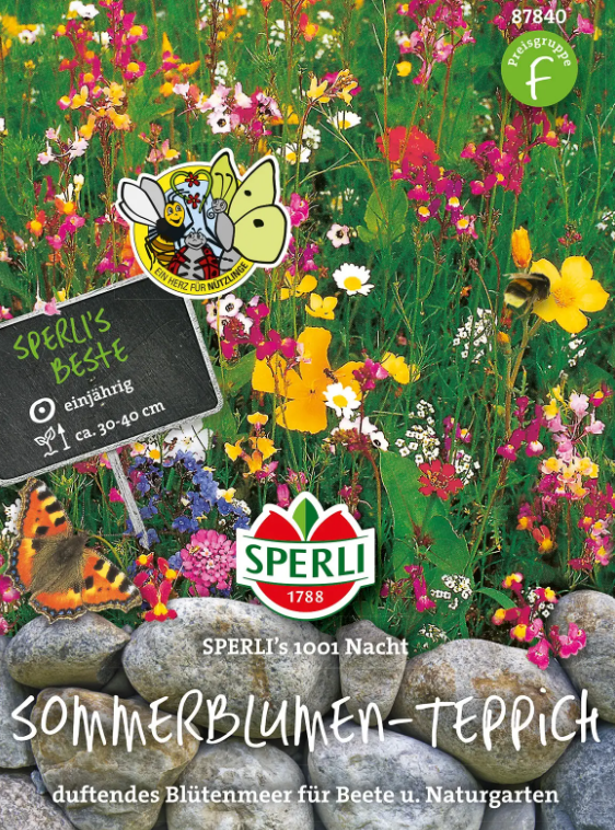 Matala yksivuotinen Kukkasekoitus SPERLI’s 1001 nights takaa värikkään kukkameren. Matalat kukat ovat 30–40 cm korkeita. Perhoset, mehiläiset ja kimalaiset rakastavat tätä värikkäiden kukkien yhdistelmää! Annos riittää noin 2 neliölle.