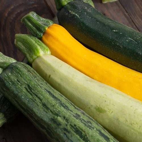 Sekoitus eri kesäkurpitsalajikkeita : Atena Polka 20%, Astra Polka 20%, Striato D’Italia 20%, Black Beauty 20%, Nimba 20%