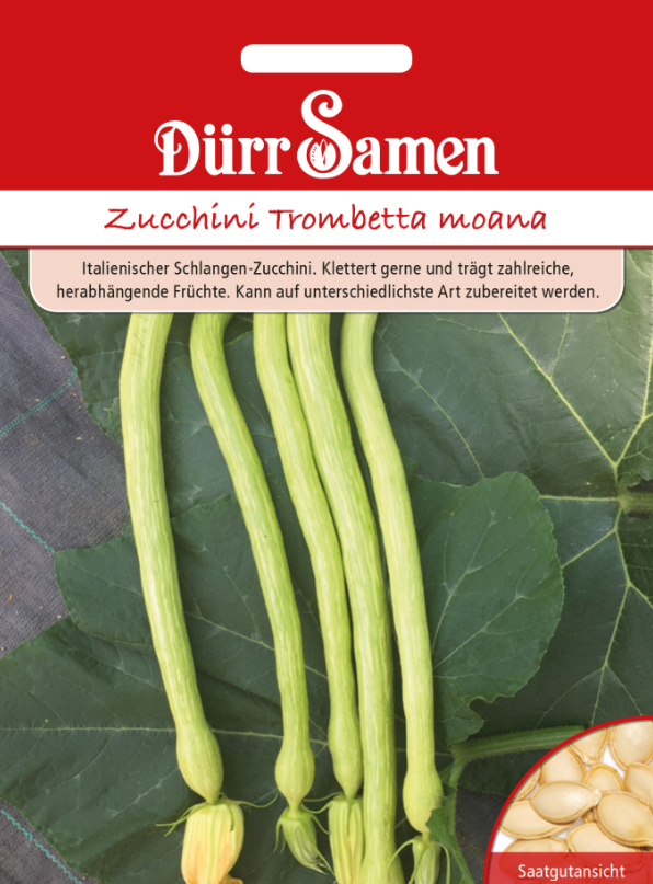 Kesäkurpitsa Trombetta Moana. Italialainen, maukas, köynnöstävä kurpitsa.Siemen itää 7-14 vuorokaudessa 12 asteessa, optimi lämpötila 24 astetta. Kasvupaikka lämmin. Satoa saadaan alkaen 80 vuorokautta kylvöstä. Annoksessa noin 8 siementä.