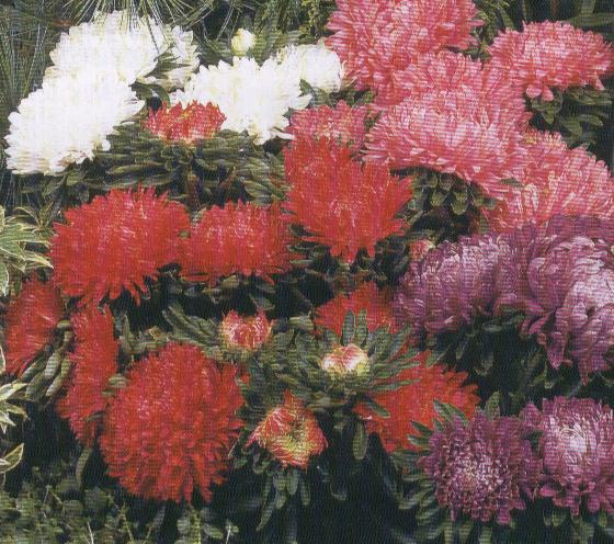 Sekoitus.Korkeus 20 cm. Matala, hyvin haaroittuva, leveästi kasvava. Suuret kerrotut kukat, muistuttavat krysanteemia. Sopii erityisesti ruukkuihin ja ryhmiin. Kylvetään maalis-huhtikuussa, itää 7-14 vuorokaudessa 12-15 asteessa. Kukinta elo-syyskuussa. Astereita ei saa viljellä samassa mullassa kahta vuotta peräkkäin. Annoksessa noin 0,5 g/225 siementä.