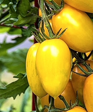 Pitkulaiset, keltaiset hedelmät. Kylvö helmi-huhtikuu. Annos 10 tai 100 siementä. Solanum lycopersicum Katiebell F1.