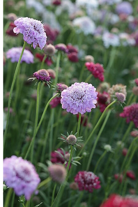 Scabiosa Atropurpurea, koreantörmäkukka, sekoitus eri värejä – yksivuotinen koristekasvi.
