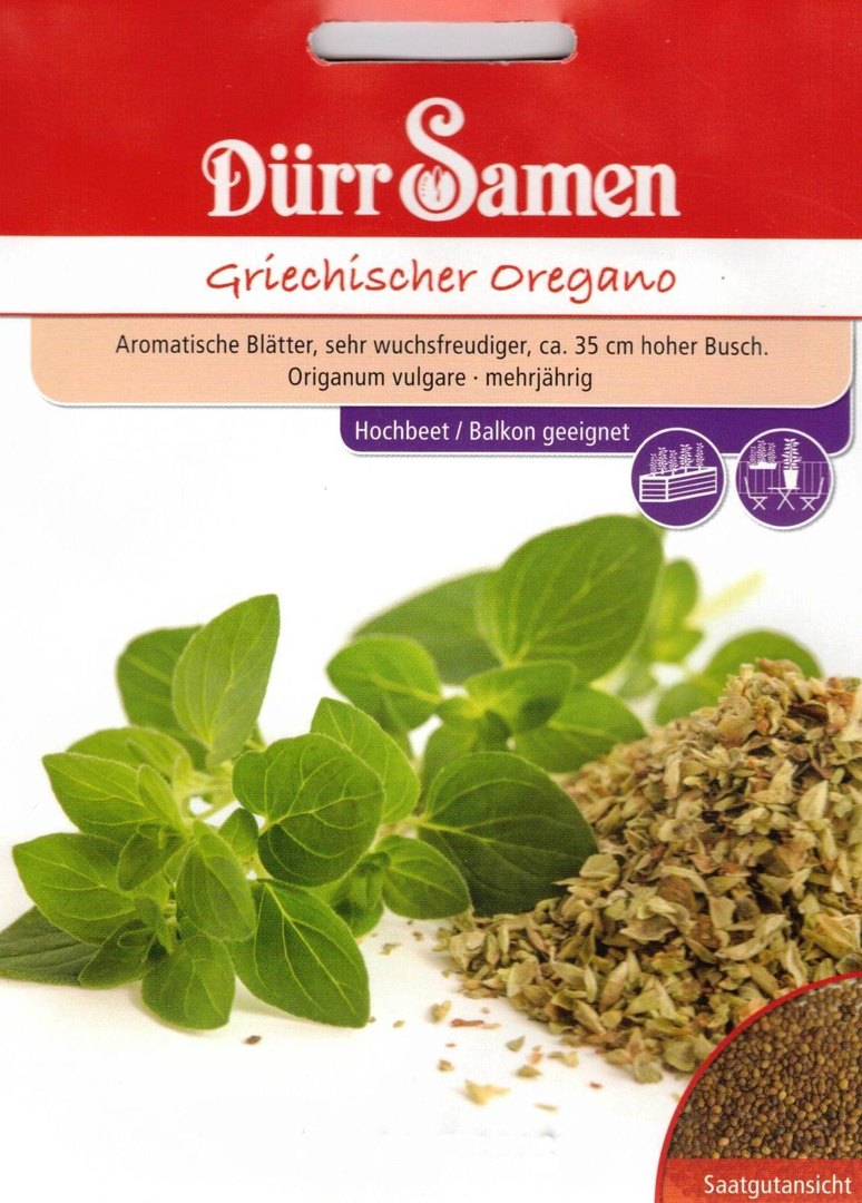 Origanum vulgare subsp. hirtum, monivuotinen mausteyrtti. Voimakkaanmakuisen kasvin siemenetkin tuoksuvat vahvasti oreganolta. Siemenet kylvetään maalis-huhtikuussa, itämisaika 6-10 vuorokautta 12-16 asteessa, itää valossa. Satoa saadaan kesä-elokuussa. Annoksessa noin 200 siementä.