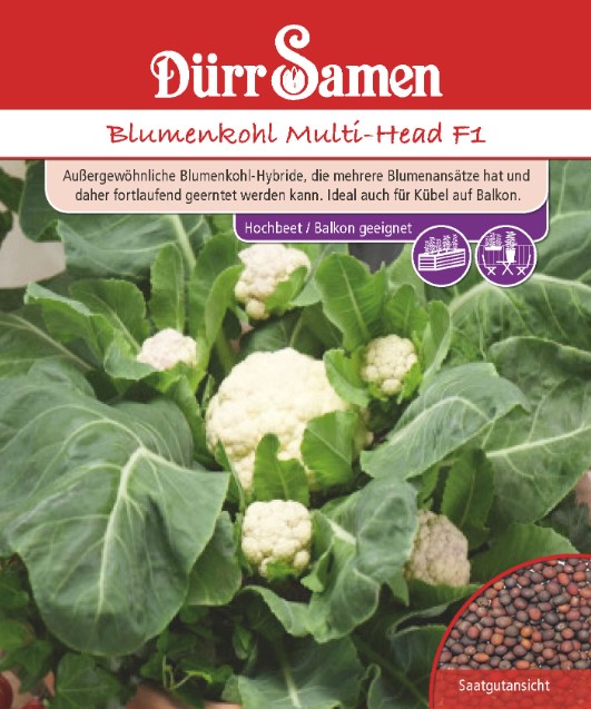 Kukkakaali Multi-Head F1 on poikkeuksellinen ja laadukas kukkakaalihybridi, jossa on useita kukintoja ja sitä saadaan siksi satoa jatkuvasti. Sopii hyvin myös ruukkuihin parvekkeilla ja terasseilla. Annoksessa n. 15 siementä.