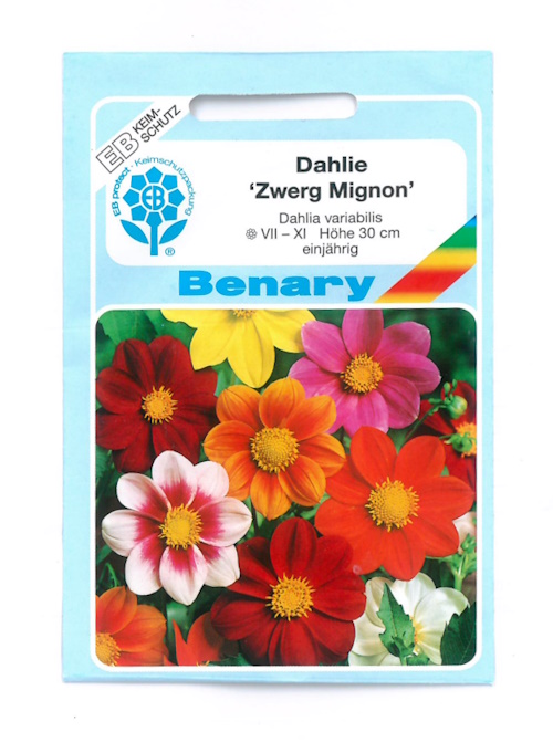 Suomessa: Dahlia x hortensis, Zwerg Mignon- sekoitus.