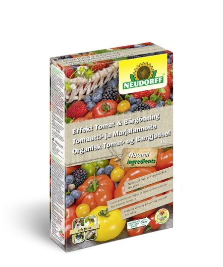 Tomaatti- ja marjalannoite Neudorff on biologis-orgaaninen, luonnonmukainen sekä teholtaan kestovaikutteinen erikoislannoite, joka soveltuu kaikille marjoille ja tomaateille. Tämä lannoite sisältää runsaasti maaperää parantavia mikro-organismeja. Tämän ansiosta kasvi voi paremmin ja saa aikaan runsaan sadon. Lannoitteen sisältämän Mykorritsa-sienirihmaston ansiosta kasvin juuristopinta-ala kasvaa, tämän ansiosta saaden aikaan juurien voimakkaamman kasvun. Tästä syystä kasvin veden sekä ravinteiden saanti tehostuu, ja kasvi kestää myös paremmin erilaisia stressitilanteita, kuten esimerkiksi kuivuutta ja kasvitauteja.