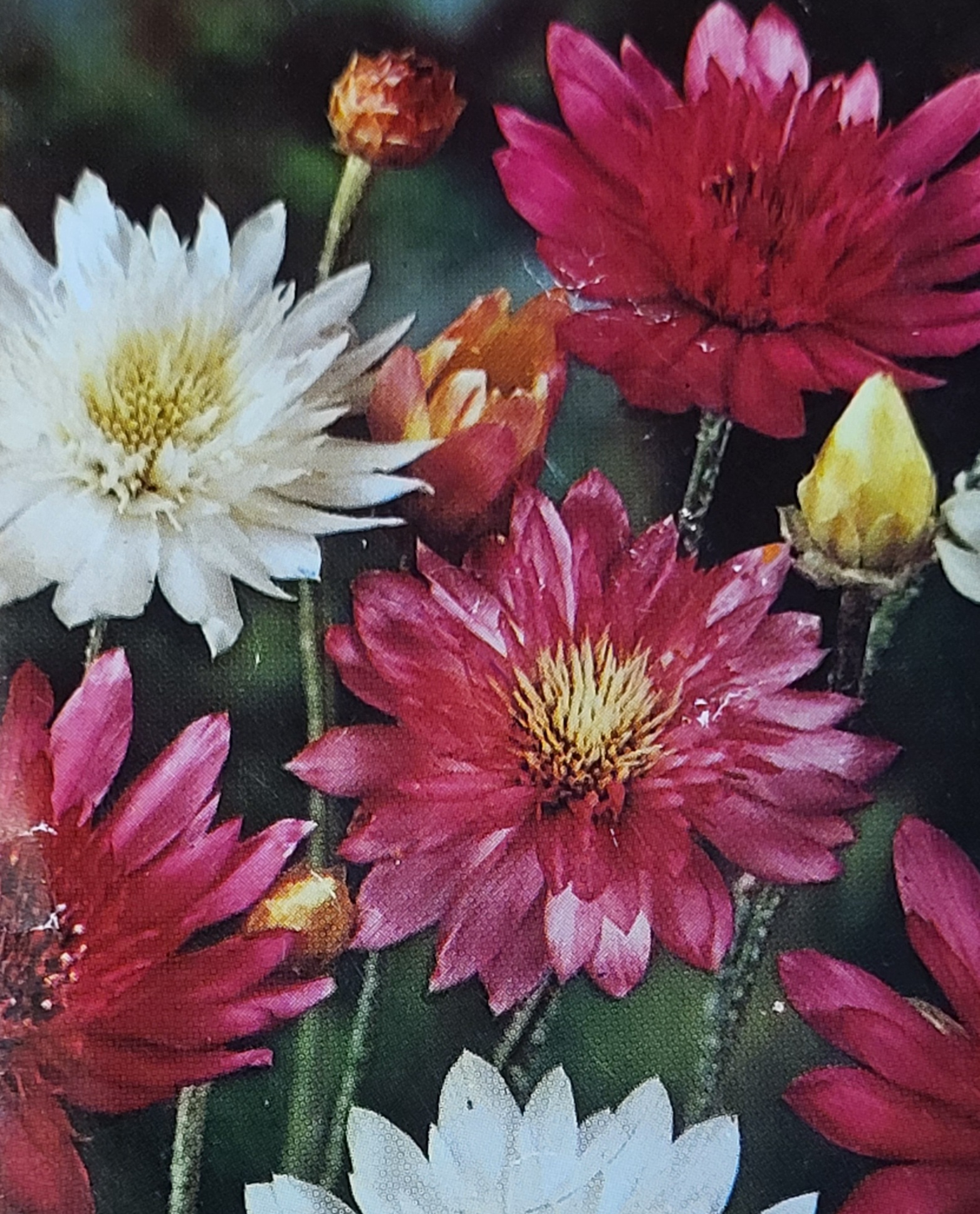 Sekoitus. Korkeus 60 cm. Hyvä kuivakukka. Värit säilyvät hyvin kuivattuina.Kylvetään huhti-toukokuussa, itää 7-14 vuorokaudessa 15 asteessa. Kasvupaikka aurinkoinen, läpäisevä. Kukinta kesäkuusta syksyyn. Määrä 1 g/ 650 siementä.