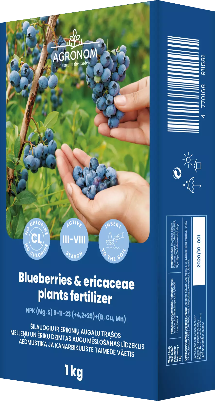 Lannoite pensasmustikoille. Rakeinen, kloorivapaa yleislannoite happaman maan kasveille: pensasmustikka, karpalo, puolukka, saniainen, Ericacea-heimon kasvit, kuten; alppiruusu, atsalea, hortensia, kanerva, kellokanerva.