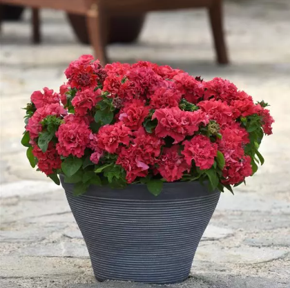 PETUNIA Double Cascade Valentine 250 s. Kerrottukukkainen, loistavan punainen, muistuttaa neilikkaa.