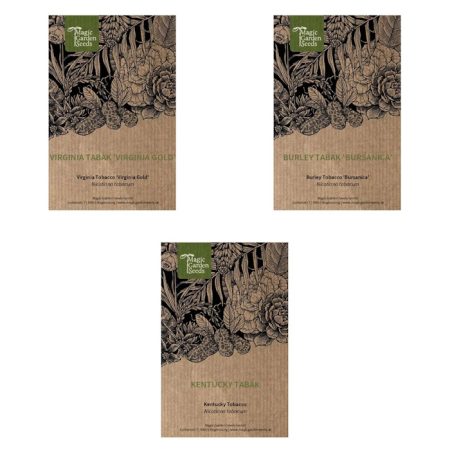 Pakkaus sisältää kolme annospussia tupakansiemeniä, seuraavia lajikkeita.