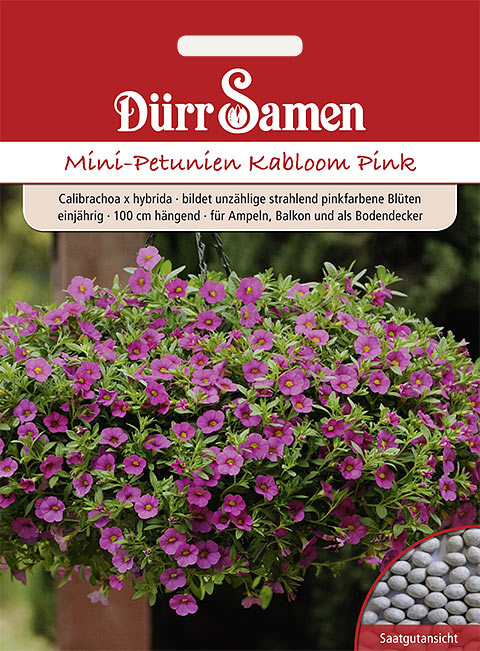 Ensimmäinen siemenestä lisättävä pikkupetunia. Korkeus 100 cm. Sopii amppeleihin, ruukkuihin, laatikoihin. Kylvetään helmi-huhtikuussa, siemen itää valossa 20-24 asteessa 10-14 vuorokaudessa. Kasvupaikka valoisa, puolivarjo tai varjo. Kukinta alkaa toukokuusta alkaen. Määrä 100 pilleriä.