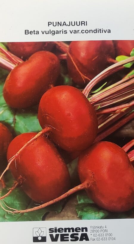 Sopii hyvin nippupunajuureksi. Kylvetään aikaisin keväällä kesäkäyttöä varten ja talvikäyttöä varten kesäkuussa. Määrä (arvio) 250g/ 20000 siementä.