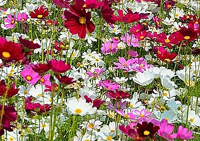 Ihastuttava sekoitus kosmoskukkia ’vega’. 30-50 cm.
