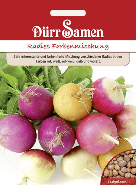 Keltainen, violetti ja valkoinen ja puna-valkoinen retiisi.