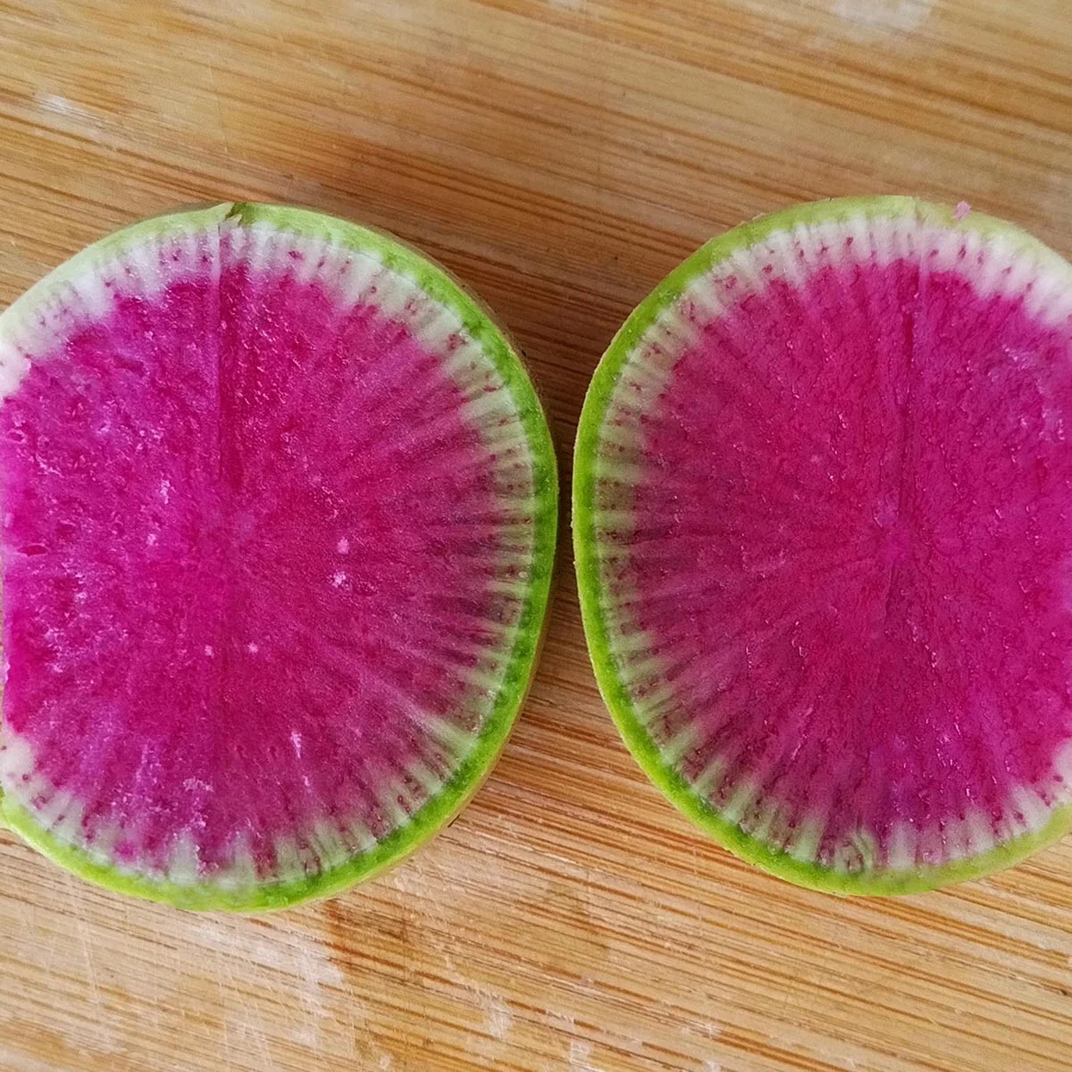 Vesimeloniretikka. Sopii kasvihuoneeseen tai avomaalle, aurinkoiselle paikalle. Kylvetään huhti-heinäkuussa, itää 8-15 vuorokaudessa 10-18 asteessa. Satoa saadaan kesä-lokakuussa. Annoksessa noin 50 s. Kiinalainen lajike, jossa on valkoinen kuori ja sisältä punainen. Maukas ja pähkinäinen maku. Tunnetaan myös nimellä ’red meat’ retikka.