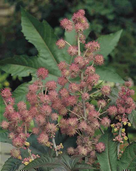 Korkeus 150 cm. Vihreät lehdet, punaiset varret. Siemen myrkyllinen. Kylvetään helmi-maaliskuussa. Siementä liotetaan 24 tuntia ennen kylvöä. Itää 14-21 vuorokaudessa 20 asteessa. Kukinta elo-lokakuussa. Viihtyy aurinkoiselle kasvupaikalla. SIEMEN MYRKYLLINEN.
