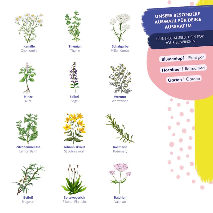 12 kappaletta rohtoyrttejä kasvimaalle tai parvekeviljelijälle, jokainen omassa pakkauksessaan, tyylikkäässä laatikossa. Hyvä lahjaidea tai tuliainen.
