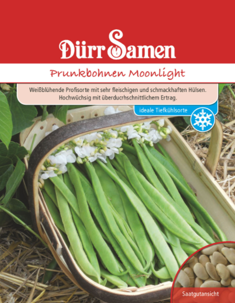 Nopeakasvuinen köynnös. Valkoiset kukat. Lyhyt taimikasvatus tai kylvö suoraan kasvupaikalle yöpakkasten mentyä. Annoksessa noin 40 s.