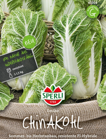Salaattikiinankaali Emiko F1. Hyvälaatuinen ja herkullinen. Esikasvatus huhtikuusta lähtien. Siemen itää 8-14 vuorokaudessa 15-20 asteessa, taimiväli 40 x 30 cm. Satoa saadaan alkaen 60 vrk: kuluttua. Kerät kiinteät, keskikorkeat, uloimmat lehdet tummanvihreät. Kerän paino noin 1-1,5 kg