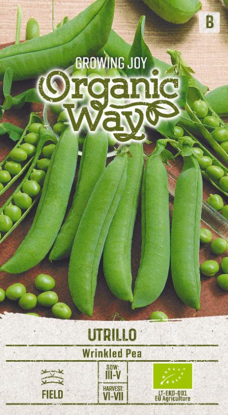 Silpoydinherne Utrillo Luomu. Kylvetään suoraan avomaalle maan lämmettyä vähintään 10 asteiseksi. Taimiväli 3-4 cm, riviväli 30-40 cm. Siemenet itävät 7-10 vuorokaudessa 20 asteessa. Aikainen ja satoisa. Satoa saadaan noin 12-14 viikkoa kylvöstä. Annoksessa noin 30-45 siementä (8 grammaa, myydään grammoittain, 1 grammassa on noin 3-6 hernettä).