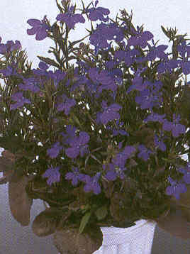 Sinilobelia Chrystal Palace. Korkeus 10 cm. Kylvetään helmi-maaliskuussa, itää valossa 10-15 vuorokaudessa 18-22 asteessa. Kukinta kesä-lokakuussa. Viihtyy aurinkoisella kasvupaikalla.