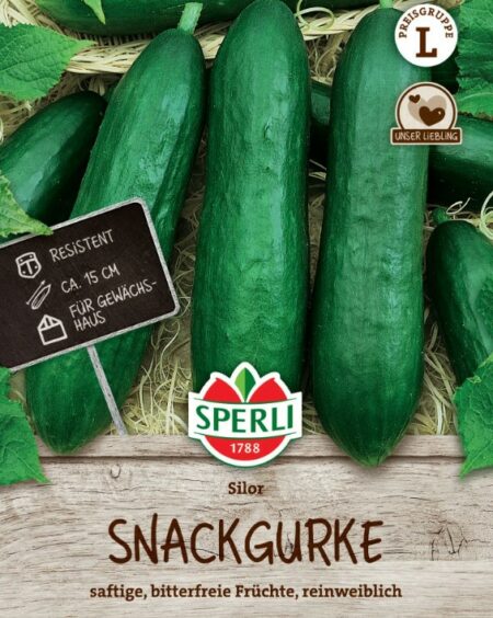 Snack kurkku Silor on korkealaatuinen F1-hybridi-mini/snack kurkku, jota voit kasvattaa sekä kasvihuonessa- että avomaalla. Se on luontaisesti vastustuskykyinen tyypillisille kasvitaudeille ja se voidaan joko esikasvattaa tai suorakylvää. Ensimmäiset 15-16 cm pitkät hedelmät ovat sadonkorjuuvalmiita heinäkuusta alkaen.