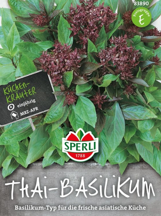 Ocimum basilicum. Thai-ruokien olennainen maustaja. Annoksesta saadaan noin 80 tainta.