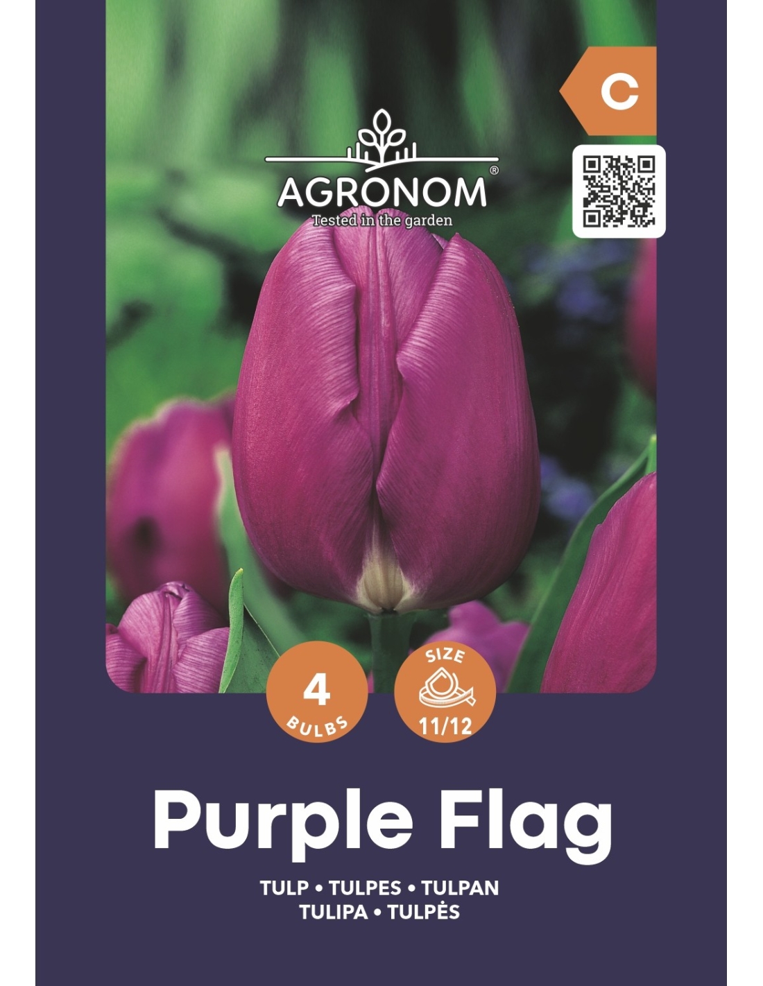 Purppuran värinen matalahko tulppaani (noin 35 cm). Sipulin koko 11/12. 4 sipulia per pakkaus.
