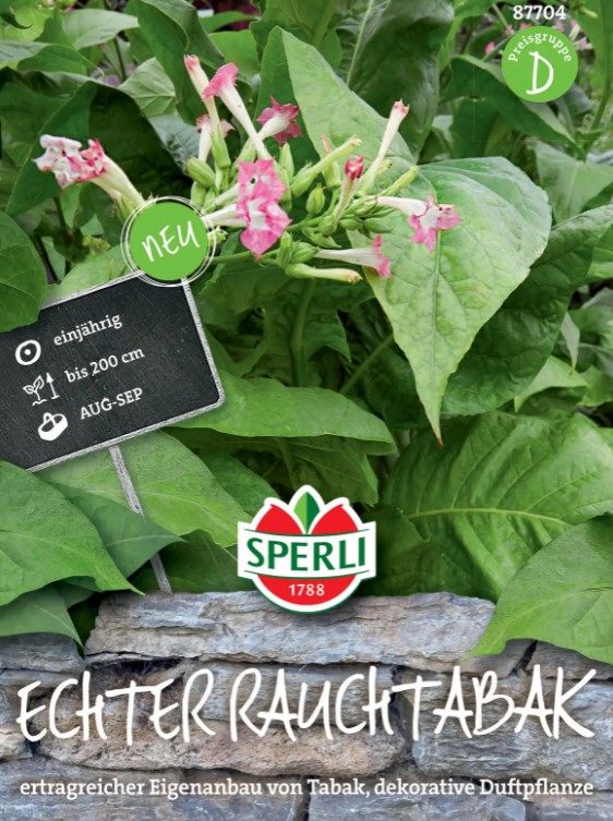 Lehdet käytetään savukkeisiin ja sikareihin. Nopeakasvuinen, isolehtinen, aromikas. Kylvetään maalis-toukokuussa, itää 2-4 vuorokaudessa 20-22 asteessa. Riviväli 50-60 cm, taimiväli 15 cm. Korkeus n. 200 cm. Satoa saadaan elokuusta alkaen. Viihtyy aurinkoisella kasvupaikalla. Annos noin 80 siementä.