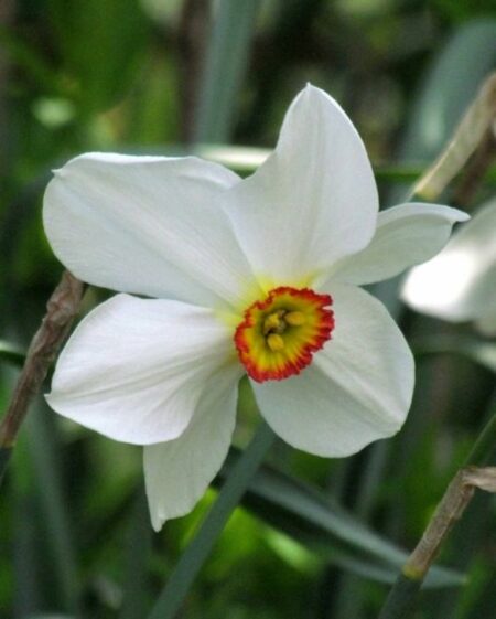 Perinteikkään ´Actaea´-valkonarsissin sirot ja tuoksuvat kukat ovat kehälehdiltään valkoiset ja pieni lisäteriö on vaaleankeltainen, jossa on koristeellinen ja ohut, punaoranssi reuna. Erittäin kestävä ja pitkäikäinen vanhan ajan narsissilajike.